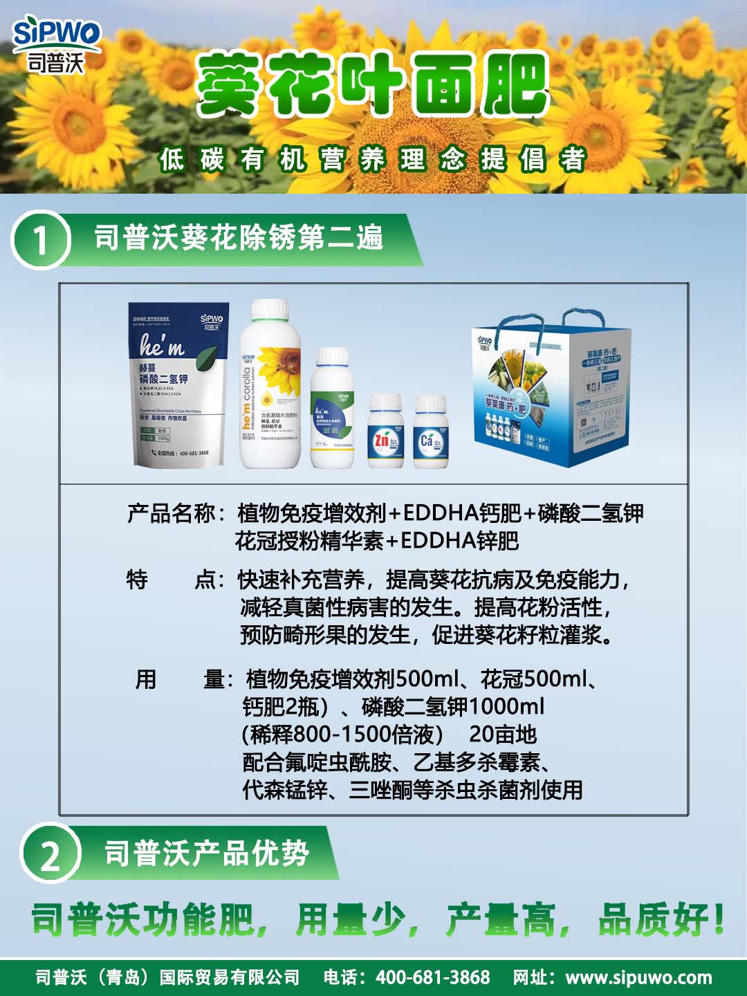 面對(duì)這(zhè)一(yī)核心需求,葵萊康科(kē)學除鏽套餐應運而生(shēng),精準鎖定除鏽關鍵點,為(wèi)葵花(huā)健康生(shēng)長(cháng)←補足養分(fēn):
